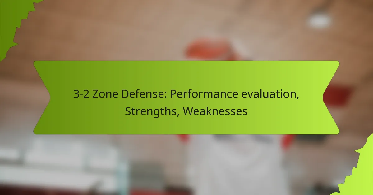 The 3-2 zone defense is a strategic basketball formation where three players focus on perimeter defense while two protect the paint. This approach aims to minimize outside shooting and bolster interior defense, creating a well-rounded defensive strategy. Evaluating its performance involves analyzing metrics such as points allowed and turnovers forced, which help coaches refine their tactics and enhance overall effectiveness.